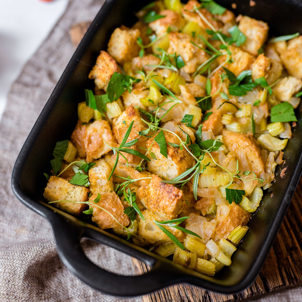 We all know the best part about any festive meal is that flavour-soaked stuffing, with all the crispy bits on top. This vegan stuffing recipe with a bacony twist will have everyone fighting over the last serving, guaranteed.